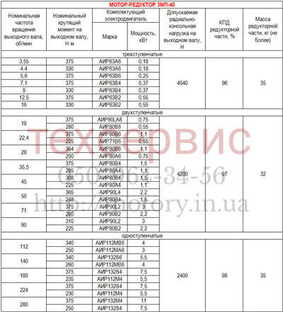 Мотор - редуктор 3МП 40 - 7 об/хв з ел. двиг. 0,37/1500